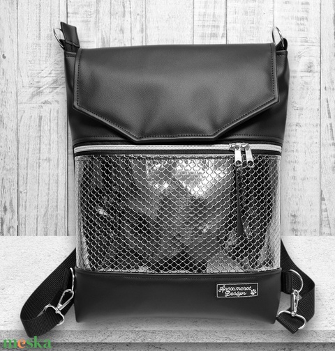 Metál platina sellőmintás fedélrészes 3in1 hátizsák univerzális táska