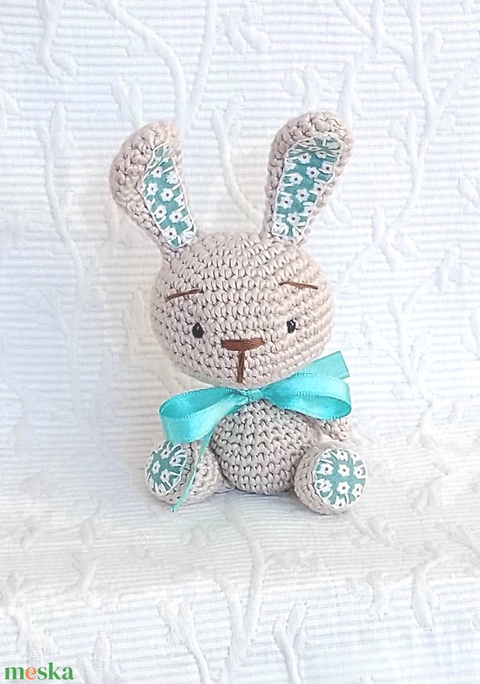 Egyedi- horgolt nyuszi - türkiz pamutvászonnal -szürkésdrapp-marokállat