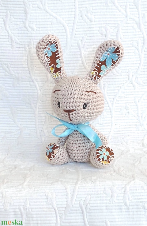 Egyedi- horgolt nyuszi - nefelejcses virágos -marokállat