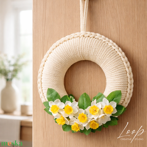 "Butter yellow" tavaszi kézműves ajtódísz – horgolt kopogtató