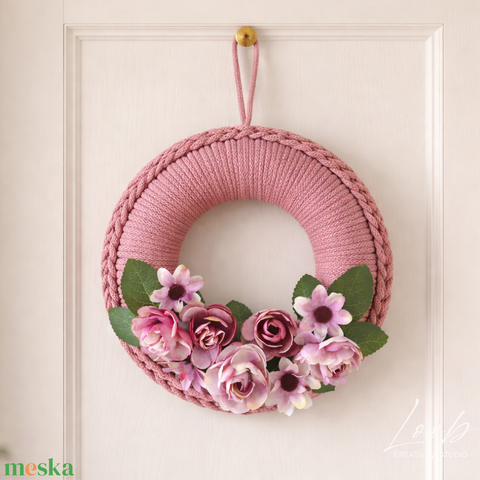 "Blossom" tavaszi kézműves ajtódísz – horgolt kopogtató