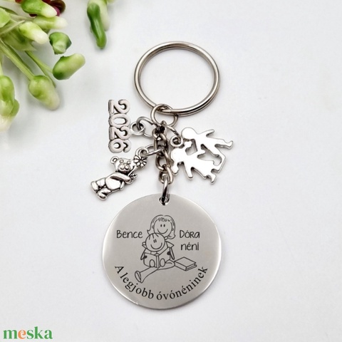 Óvó néninek ajándék pedagógusnapra, tanév végére - Gravírozott grafikás ballagási kulcstartó 4_03. (kisfiús minta)