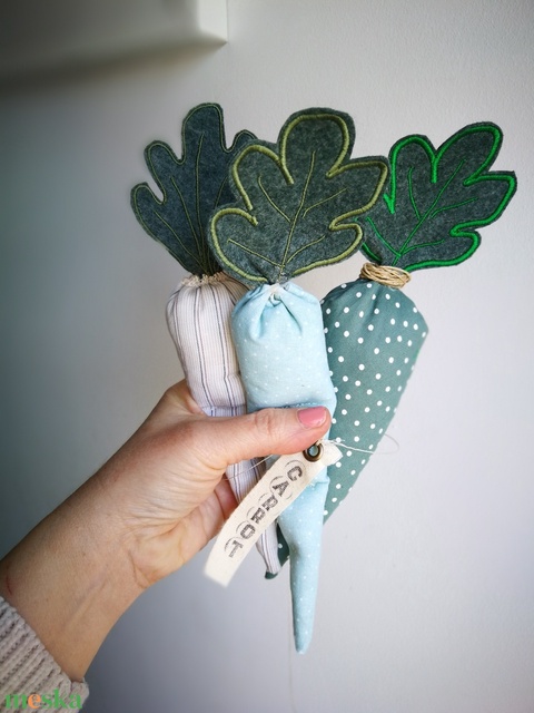 Textil dekorációs szett, Babaszoba kiegészítő, géppel hímzett répa csomag - 3 darabos