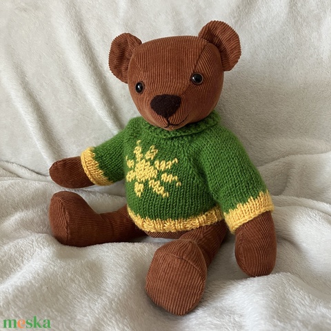 Plüssmackó zöld pulóverben