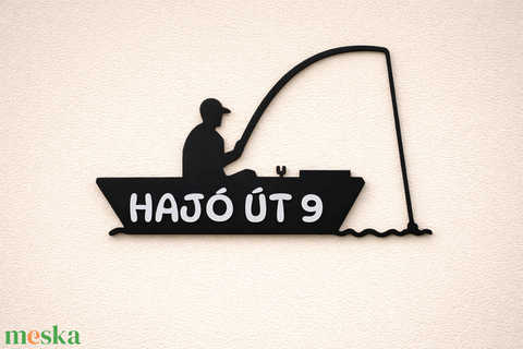 Ez a különleges házszámtábla tökéletes választás azoknak a horgászat kedvelőinek, akik szeretnék, hogy szenvedélyük már a bejáratnál megjelenjen. A csónak alakú forma és a horgász motívum igazán látványosan érvényesül rajta, karakteres, jól látható designelemként.