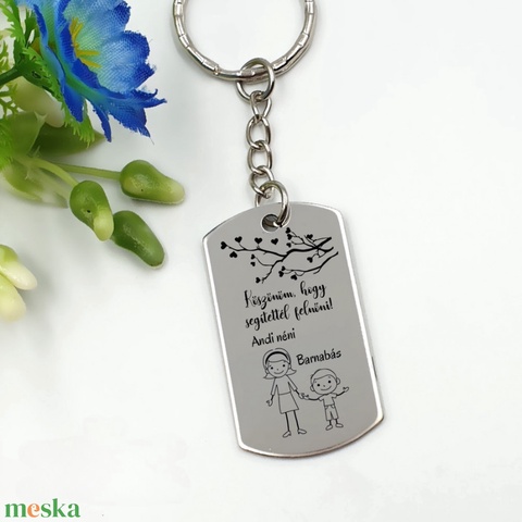 Ajándék óvó néninek tanév végére, pedagógusnapra - "Az óvó néni + én" - kulcstartó személyre szabható grafikával