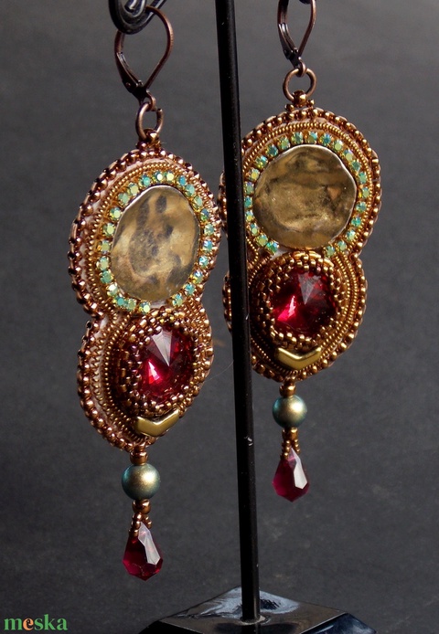 Sarolta - gyöngy hímzett fülbevaló