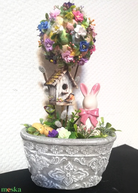 - Anyag/Összetevő cement kaspó, tűzőhab, polisztirol gömb és tojás, kerámia nyúl, mű zöldek és bogyók