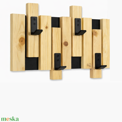 Nordic lamellás falifogas – natúr fenyő előszobafal panel fekete kampókkal