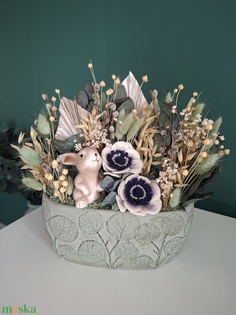 - Anyag/Összetevő betonkaspó, tűzőhab, szárazvirág, preparálteukaliptusz, filcvirág, zuzmó