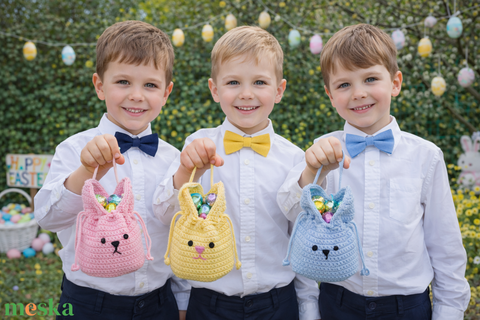 Húsvéti csokigyűjtő, pénzátadó horgolt nyuszizsákok