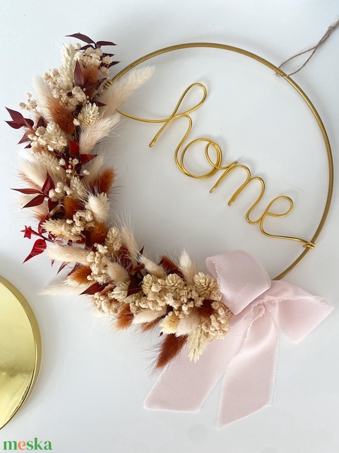 - Anyag/Összetevő arany színű fémkarika, szárazvirág