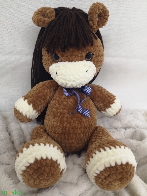 - Anyag/Összetevő zsenília fonal, akril fonal, poliészter tömőanyag, biztonsági szem