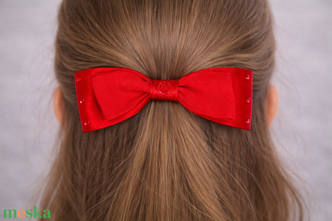 Piros rózsás masnis kislány francia hajcsat