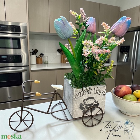 Vintage Kerékpáros Virágdísz – Tulipános Dekor