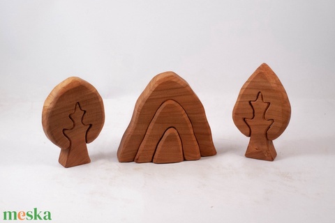 Fa tájképes kirakó, fa építő, kirakó