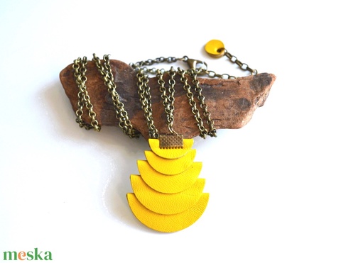 Azték istennő-citrom-hosszú nyaklánc valódi bőrrel