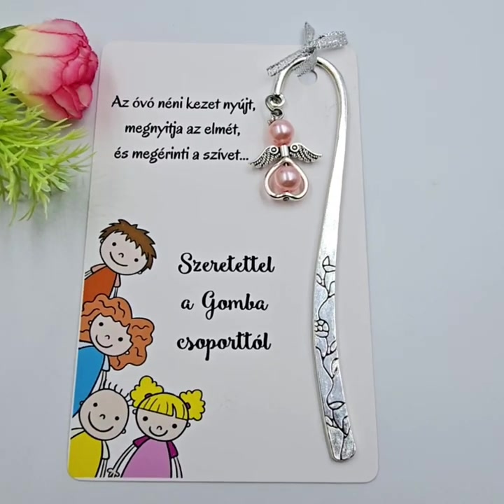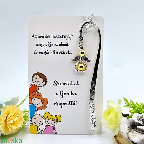 Óvó néniknek ajándék - Angyalkás könyvjelző ajándékkártyán 2.