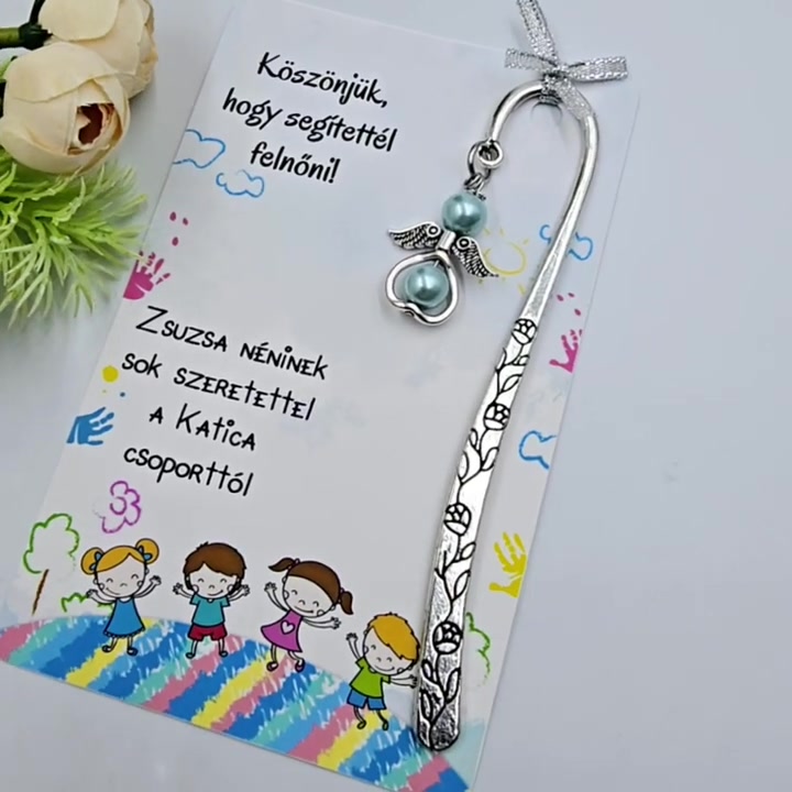 Óvó néninek ajándék - Angyalkás könyvjelző ajándékkártyán