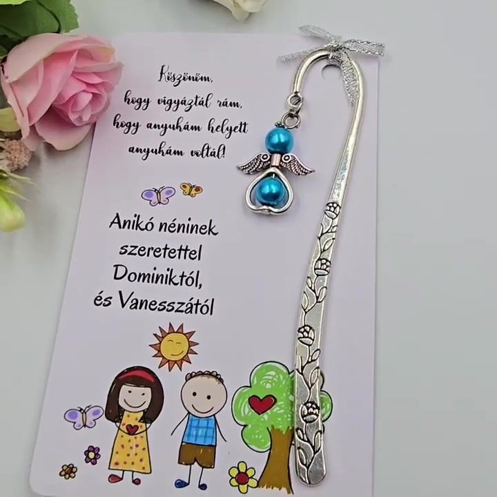 Óvó néninek ajándék - Angyalkás könyvjelző ajándékkártyán