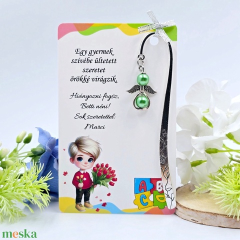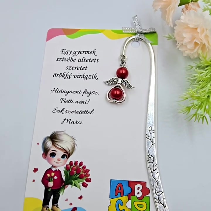 Óvó néniknek ajándék - Angyalkás könyvjelző ajándékkártyán