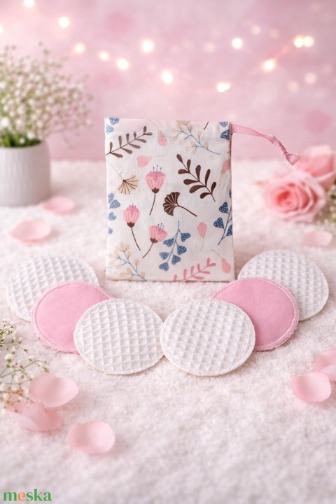 Öko kozmetikai korong szett - virágos tasakkal