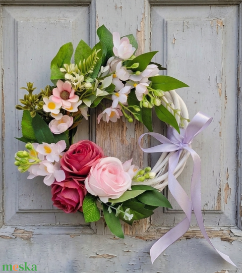 Romantikus virágos tavaszi, nyári koszorú, dekoráció- Azonnal vihető!