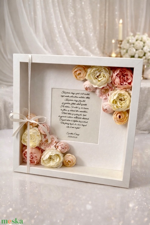 Szülőköszöntő virágos képkeret kedves üzenettel - sarkos elrendezés púderes színvilág
