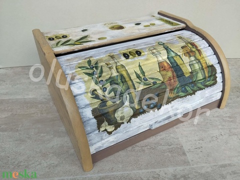 Fa kenyértartó, nagy, vintage, konyhai dekorációs kiegészítő