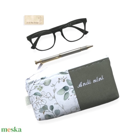 Eukaliptusz levelek mintás tolltartó neszesszer egyedi névhímzéssel