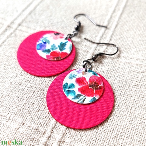 Pink és virágmintás kisméretű textilfülbevaló
