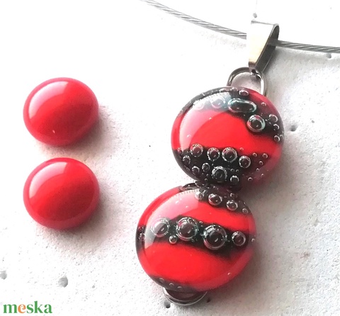 AKCIÓ! NEMESACÉL! Elegáns piros üvegékszer szett.
