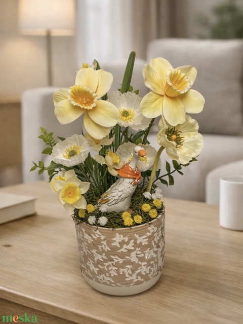 Tavaszi asztaldísz liba figurával