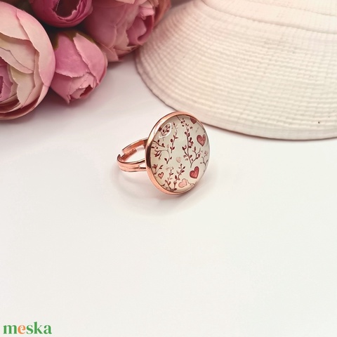 Rózsaarany gyűrű – piros szívecskés lencsével