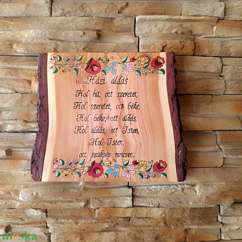 Házi áldás egyedi fa falikép kalocsai mintával
