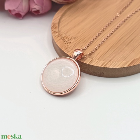 Rózsaarany nyaklánc – fehér textilbőr lencsével