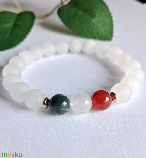 - Anyag/Összetevő karneol, fehér jáde, moha achát, hematit