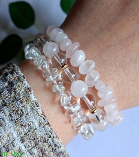 Rózsakvarc és hegyikristály ásvány karkötők- visszafogott alapdarabok szettben