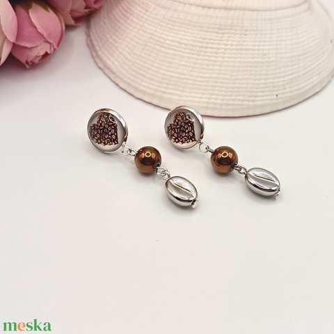 Ezüst bedugós fülbevaló – kávészív lencsével, ezüst kávészemgyönggyel