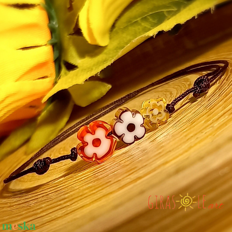 - Anyag/Összetevő millefiori muranói üveggyöngy, damilos poliészter zsinór