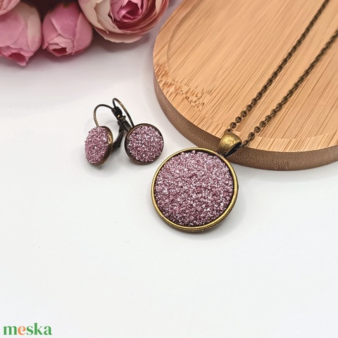 Antik bronz ékszerszett – csillogó halványlila lencsével