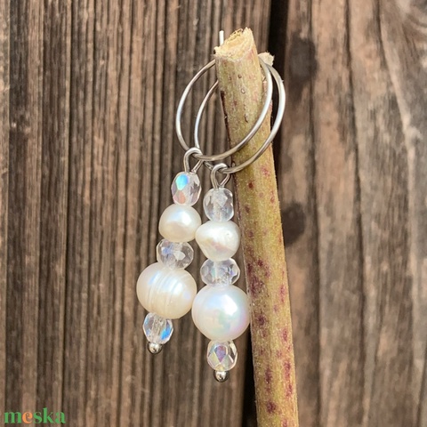 Édesvízi tenyésztett gyöngy - preciosa üveggyöngy, lógós fülbevaló - orvosi fém karika, fülbevaló alapon