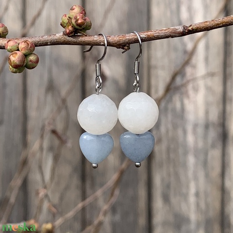 Fazettált rózsakvarc/akvamarin - lógós fülbevaló - orvosi fém fülbevaló alapon és szerelékkel