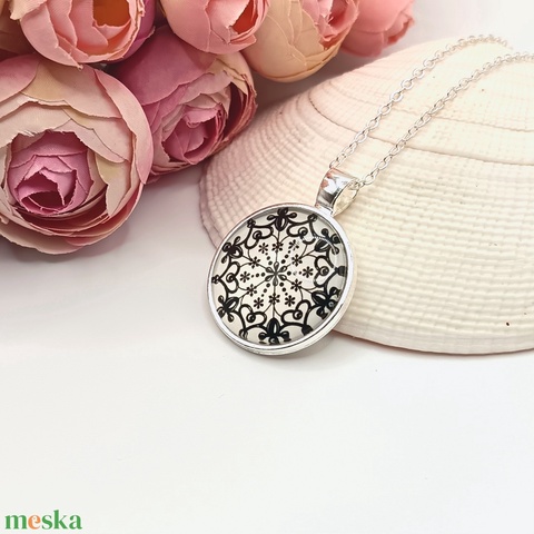 Ezüst nyaklánc – fehér, fekete csipkemintás lencsével