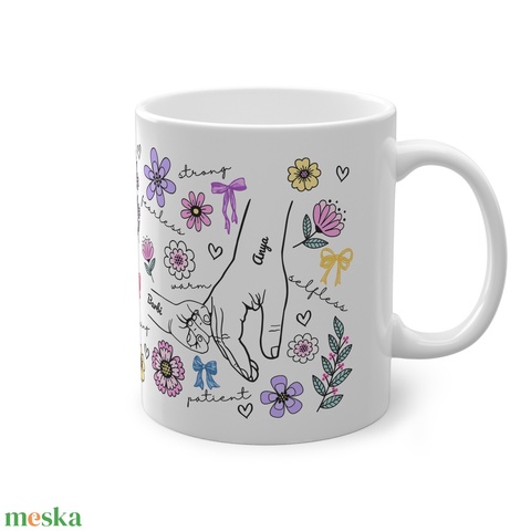 Virágos Anya-gyerek kéz bögre ajándék Anyák napjára Anyának vagy Nagymamának