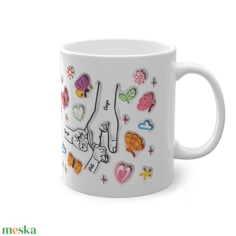 Virágos Anya-gyerek kéz bögre ajándék Anyák napjára Anyának vagy Nagymamának