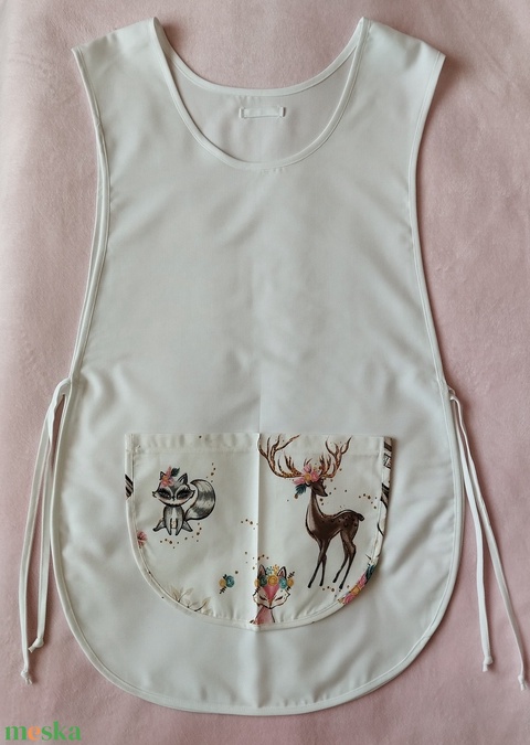Női fehér lapköpeny, Őz 🦌 mintás zsebbel , ovis , munkaruha