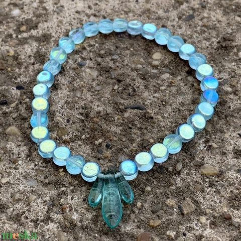 Preciosa cseh üveggyöngy gumis karkötő - türkizkék