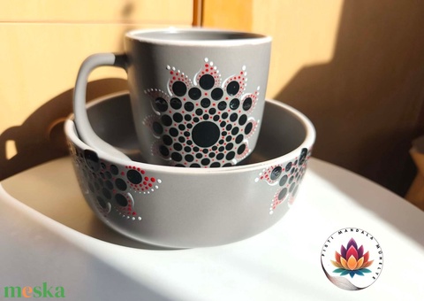 Mandalás müzlis tál és bögre szett (szürke)