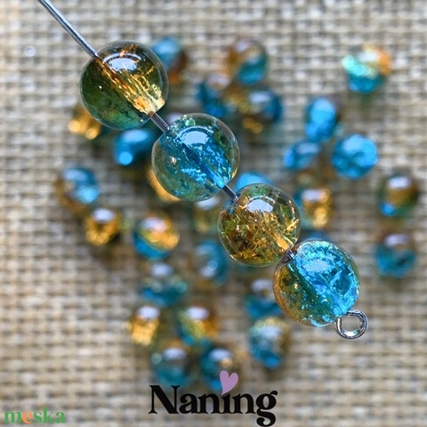 30db roppantott üveggyöngy - 8mm - átlátszó türkizkék/narancs (13ft/db)